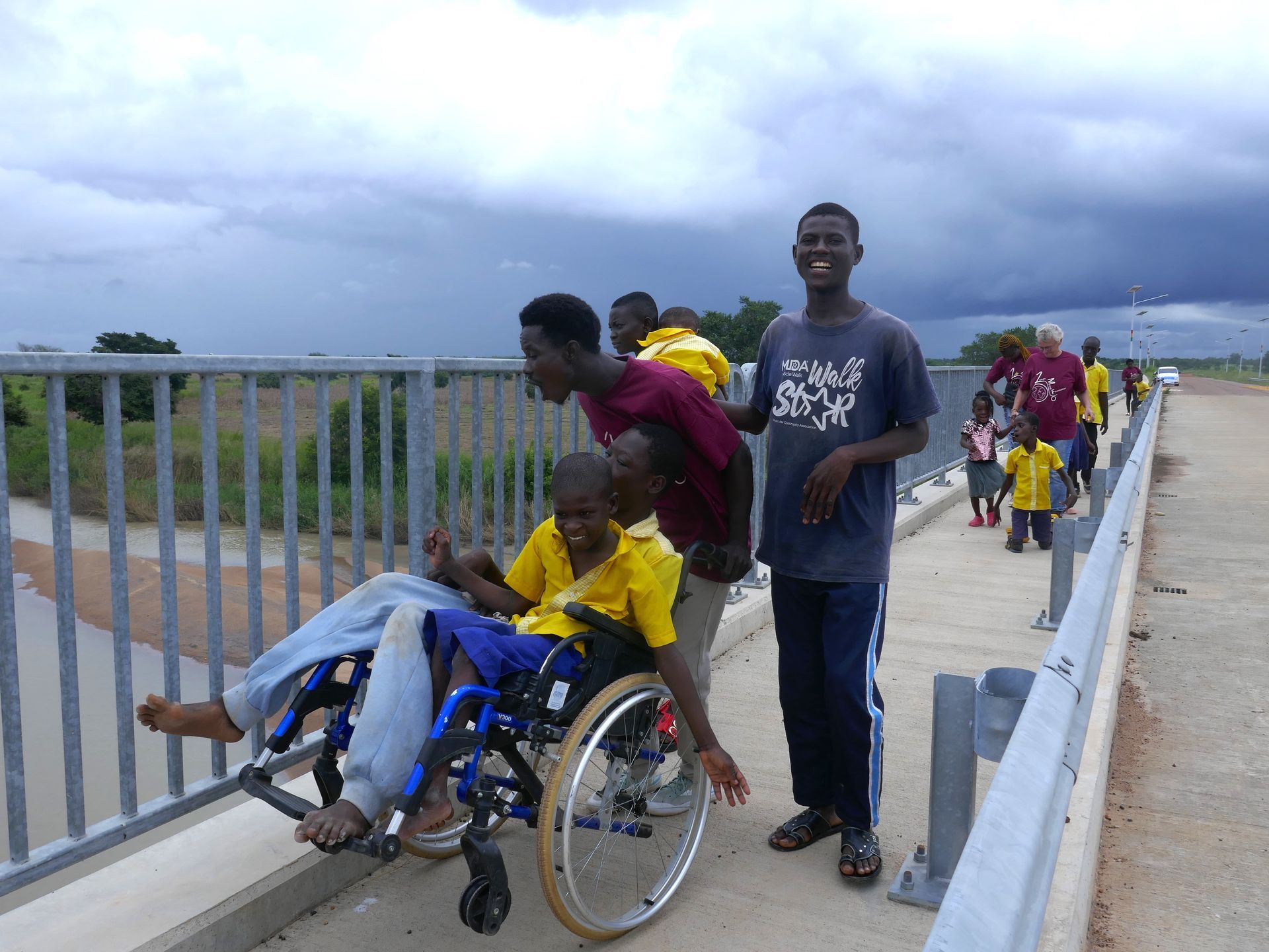 Het was een bewolkte dag, wat erg goed voor ons was, dus het was niet zo warm. Er waaide een lekker briesje. Iedereen was enthousiast toen we aankwamen. We hadden alleen één rolstoel meegenomen, omdat een andere niet meer in de bus paste. Dus werden een paar kinderen over de brug gedragen.