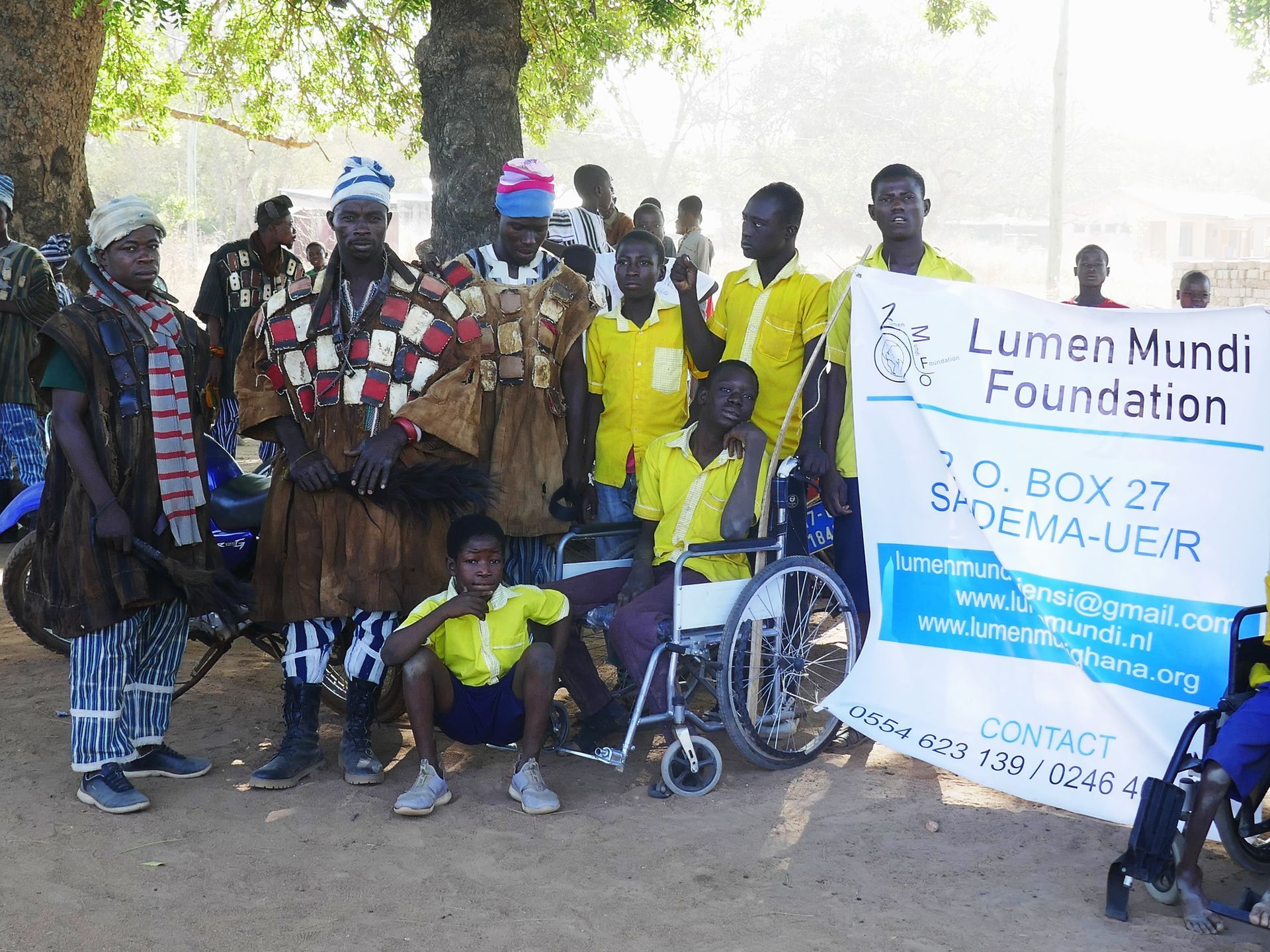 We gingen met de bus, met een rolstoel en we hadden ons spandoek bij ons. (Om te zien en gezien te worden!) We zagen 5 gemeenschappen hun oorlogsdansen dansen. We zagen 2 paarden, we zagen de Paramount Chief, én we hebben foto’s van ons met een paar krijgers kunnen maken.
