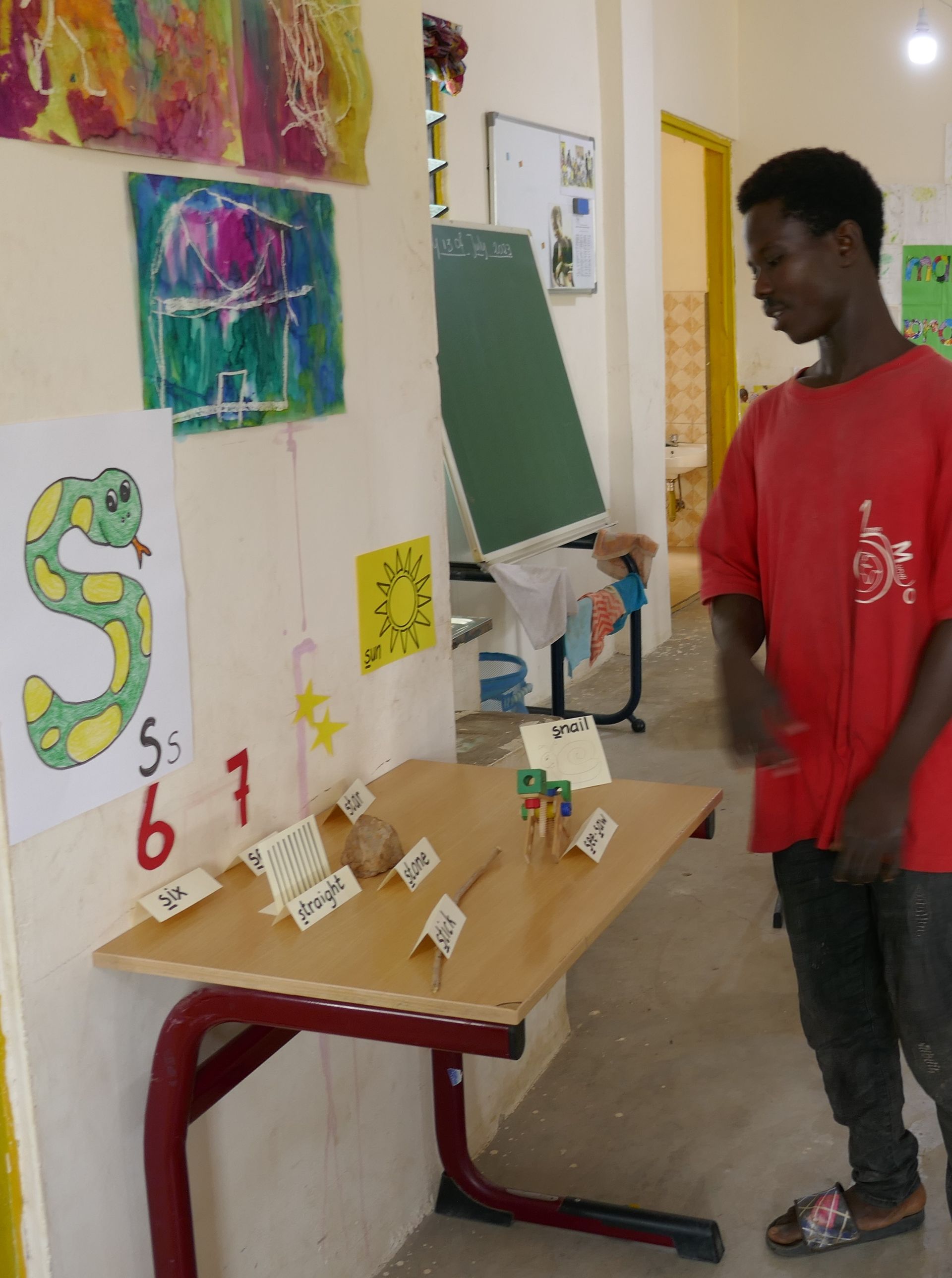 Op de Lumen Mundi School wordt anders lesgegeven dan op de andere scholen in Ghana. We werken veel met materialen en leggen op veel verschillende manieren iets uit. Vaak met gebruik van materialen. Wat we leren aan de kinderen laten we hen, indien mogelijk, in de praktijk gebruiken. Bijvoorbeeld: in de rekenles tellen we tot 10. Als er bekers nodig zijn voor de maaltijd vragen we de kinderen om 6 bekers te halen. Daarmee begrijpen de kinderen dat het geen trucje is dat je nodig hebt, maar dat het nuttig is.