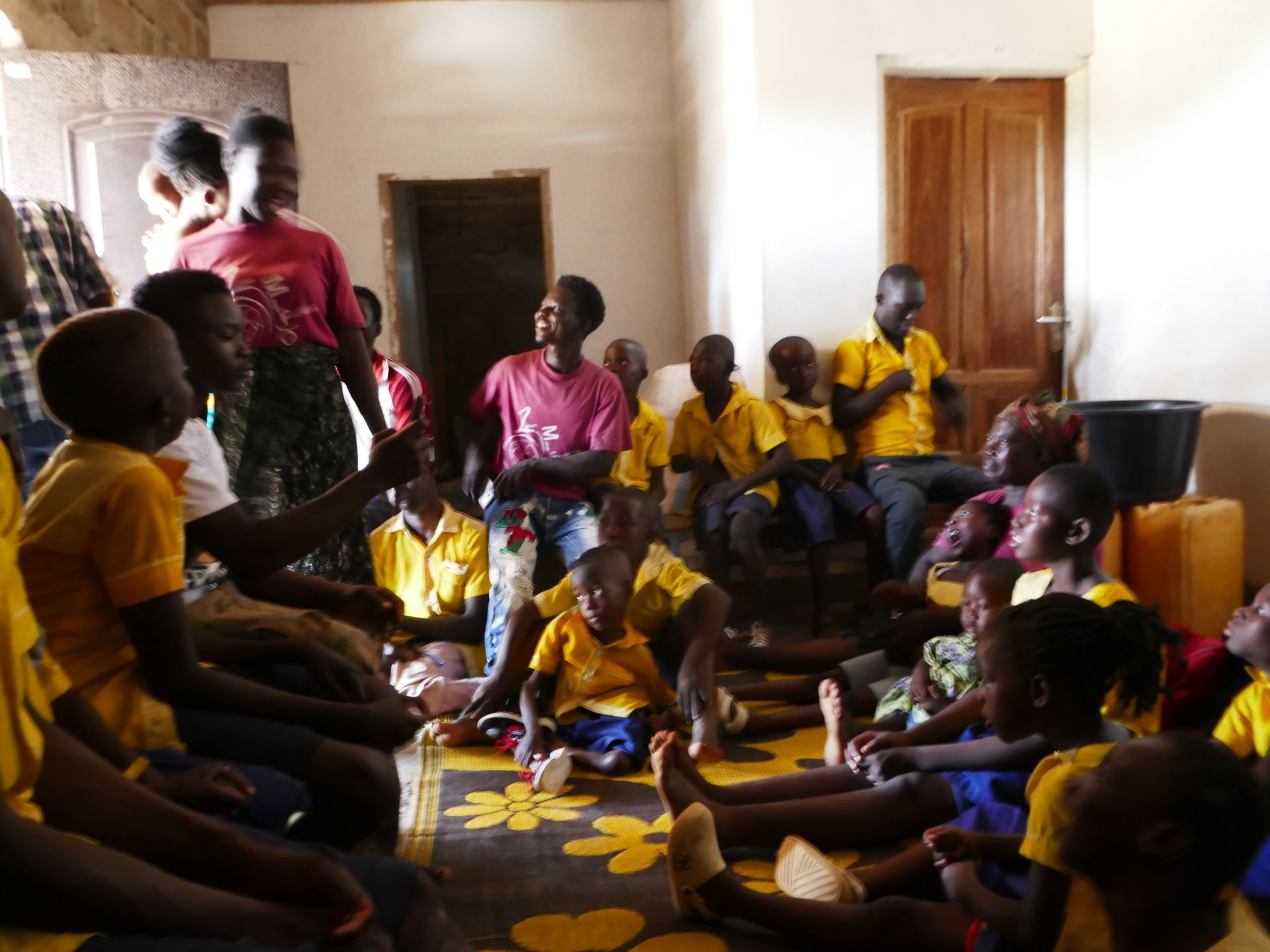 We werden zeer hartelijk ontvangen met een zakje water. Daarna hebben we gezongen voor Martha en Hasin.