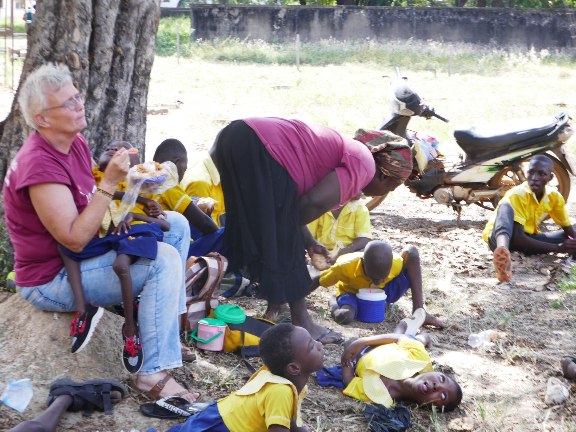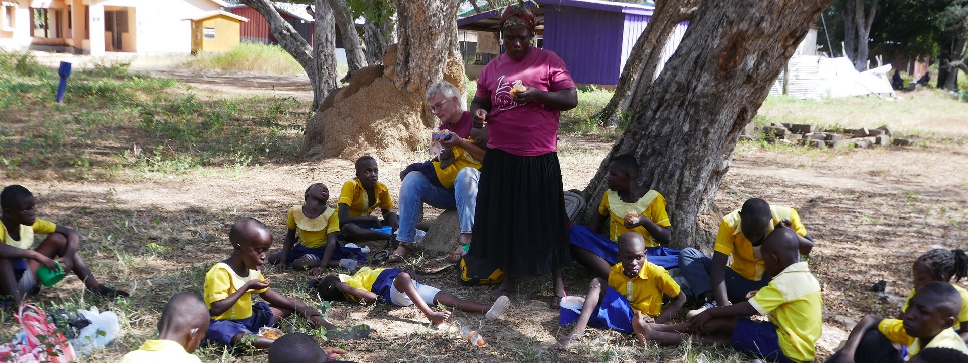 Daarna hebben Godfred en Margreet nog gedrumd: Godfred op een lege jerrycan en Margreet op een lege wasbak. Iedereen heeft gedanst en genoten!