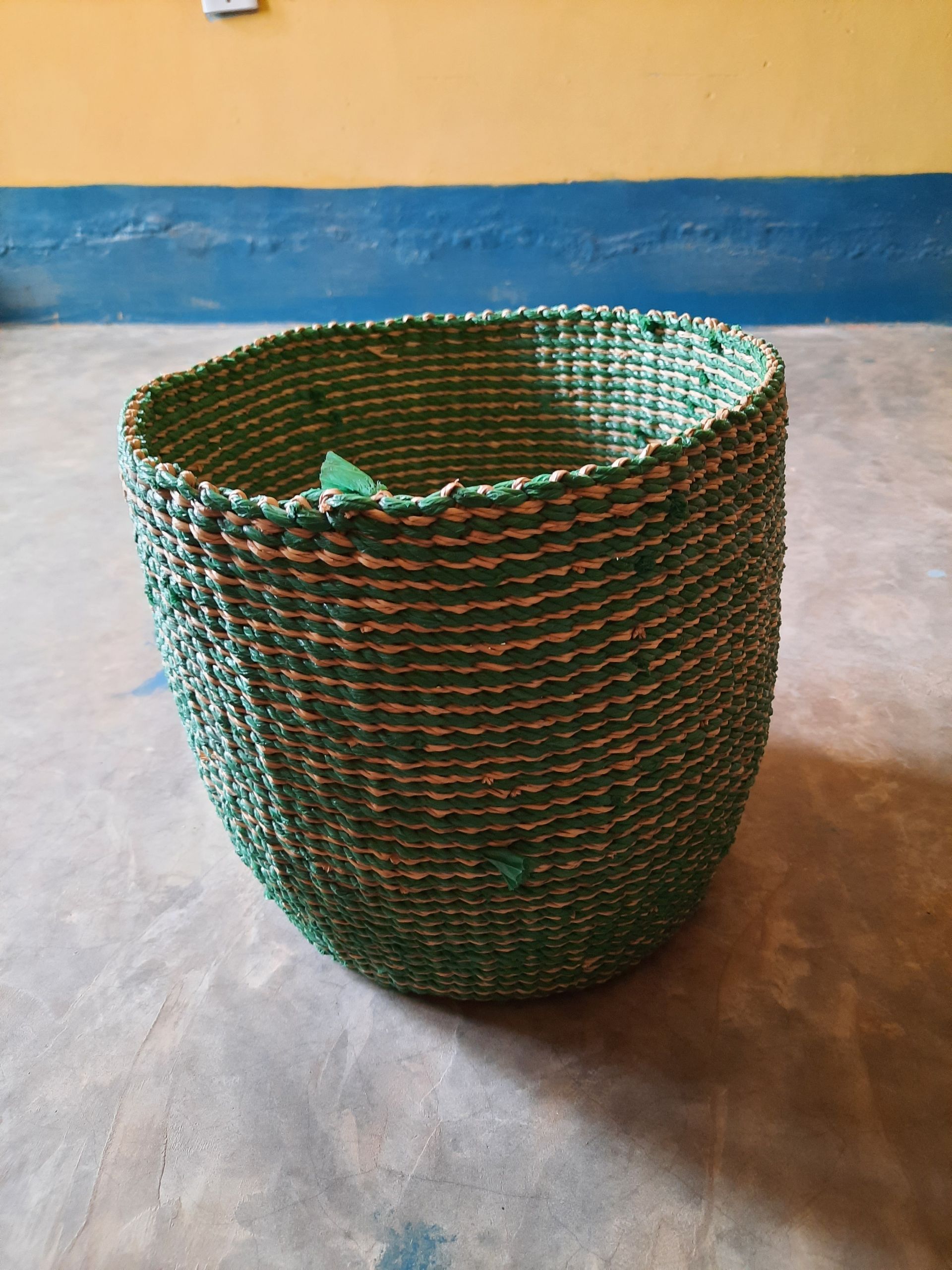 Er wordt gewerkt aan het ontwerp van een regenjas voor kinderen (op de foto showt de zoon van Richard Asumbisa het eerste prototype) en aan een zwemvest. Paul, een selfmade student van 28 met een fysieke beperking, liet ons zien dat een jongen in het zuiden vond dat de omgeving van zijn school zo vies was. Deze jongen maakte van waterzakjes grote afvalemmers (foto). Dat is voor ons zeker ook een idee!