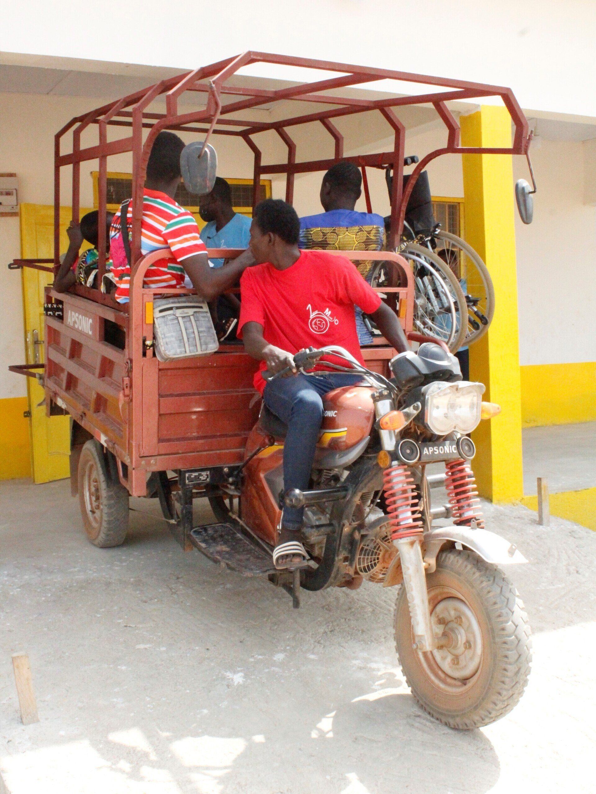 Wat een spannende week hebben we achter de rug! Het was prachtig om te zien hoe de eerste MotorKing-reis begon vanaf het postkantoor. Uiteraard African approximate time, maar uiteindelijk was het dan zover! Richard, Kojo, Phillip de bestuurder, en Martha de kokkin, hebben de kinderen in de MotorKing gezet en met de veiligheidsbanden vastgezet. Helaas zijn ze te kort, maar met wat creativiteit en knopen is het gelukt. Uiteraard heb ik foto’s gemaakt.