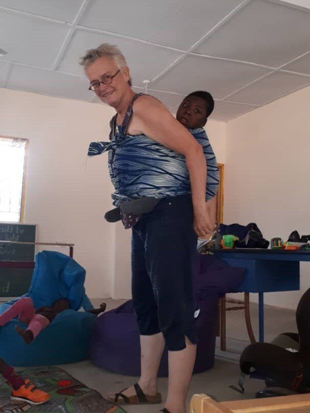 En dat is heel fijn, want de groep is zo divers, dat we alle handen kunnen gebruiken. Mary ondersteunt niet allen Daniël, maar ze traint Loïs met zitten, ze verschoont luiers en wanneer ik Loïs huilt helpt Mary Loís op mijn rug, zodat ik met haar kan lopen. Loïs weegt net zoveel als een zakcement! Da’s uiteaard niet waar, maar ze geeft oor geen meter mee.