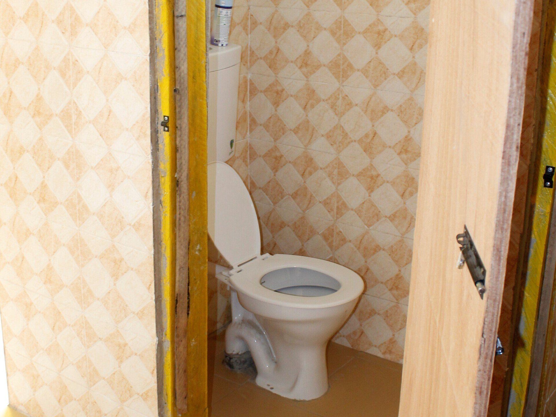 Of course, we also have toilets in the building. (Thanks in part to the Ladies of the Silk Thread and other donors.) The toilets are used intensively. We have a toilet for people with disabilities. Unfortunately, we cannot use that yet: the water pressure is not high enough, because our water tank is not high enough. Furthermore, the toilet itself is not completely in order, because the water does not remain in the water reservoir. It runs straight into the pot. It is already on an elevation, so the height is good.