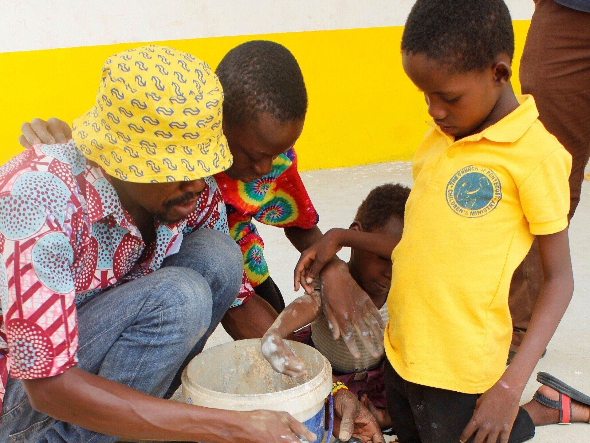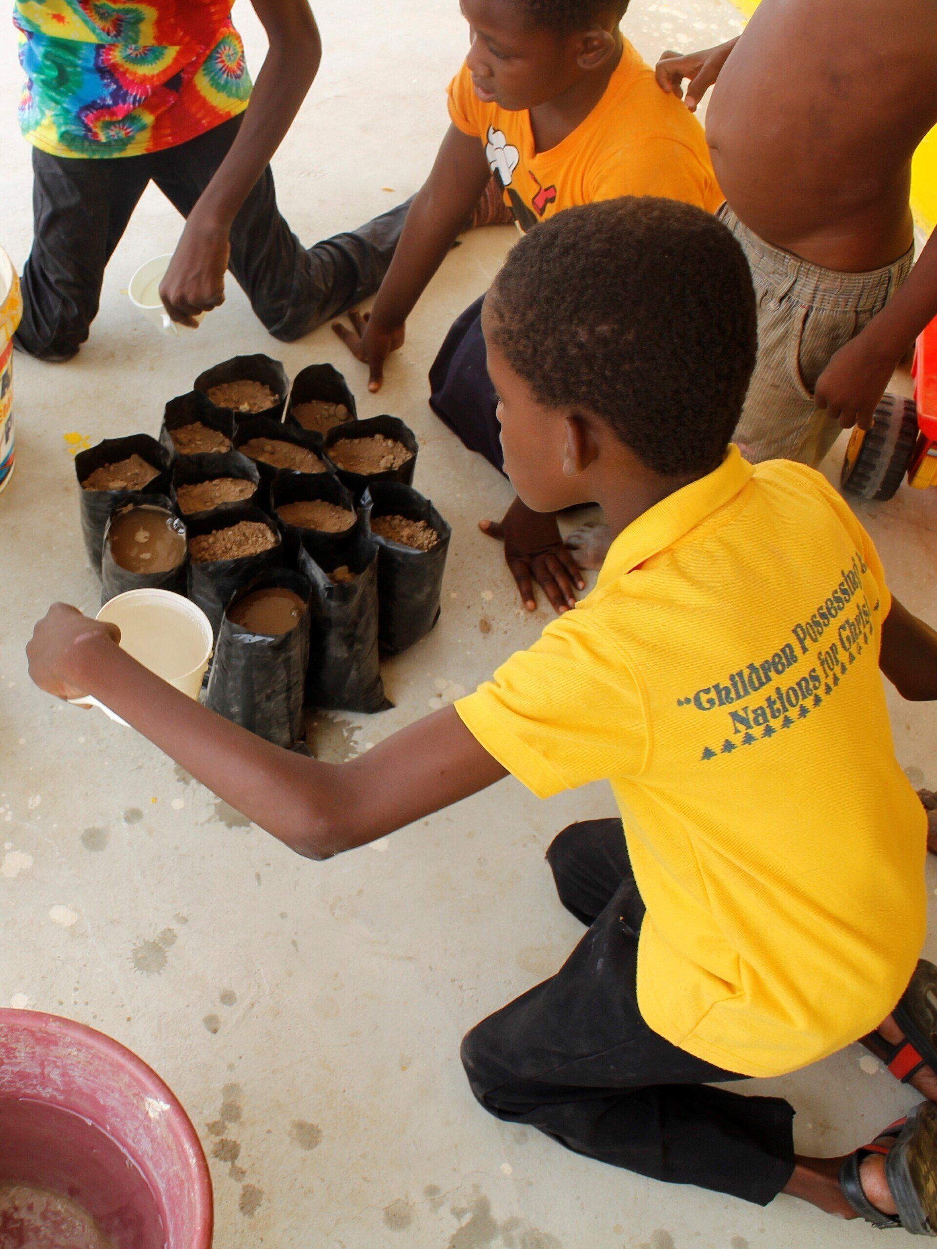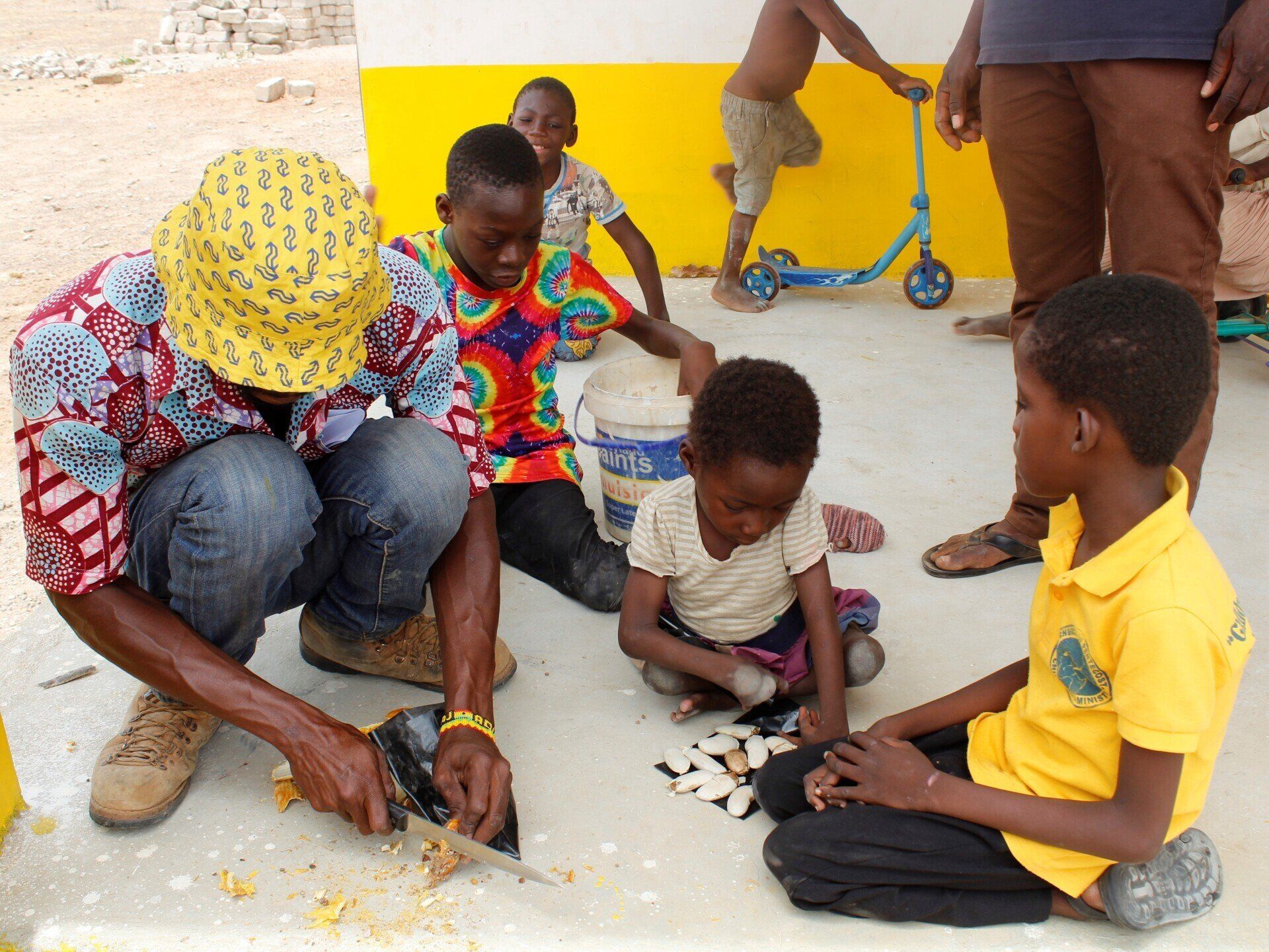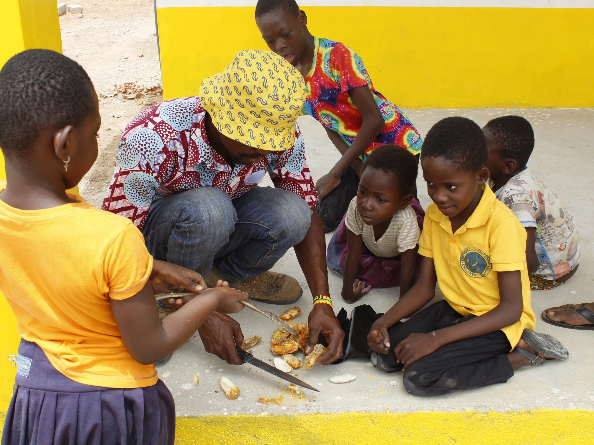 Wat een genot om te zien. Richard kwam even kijken in Siniensi en zag veel mango pitten op de grond liggen. Hij wil proberen om ze te planten en zo geld te verdienen, door ze te verkopen als ze zijn uitgelopen.