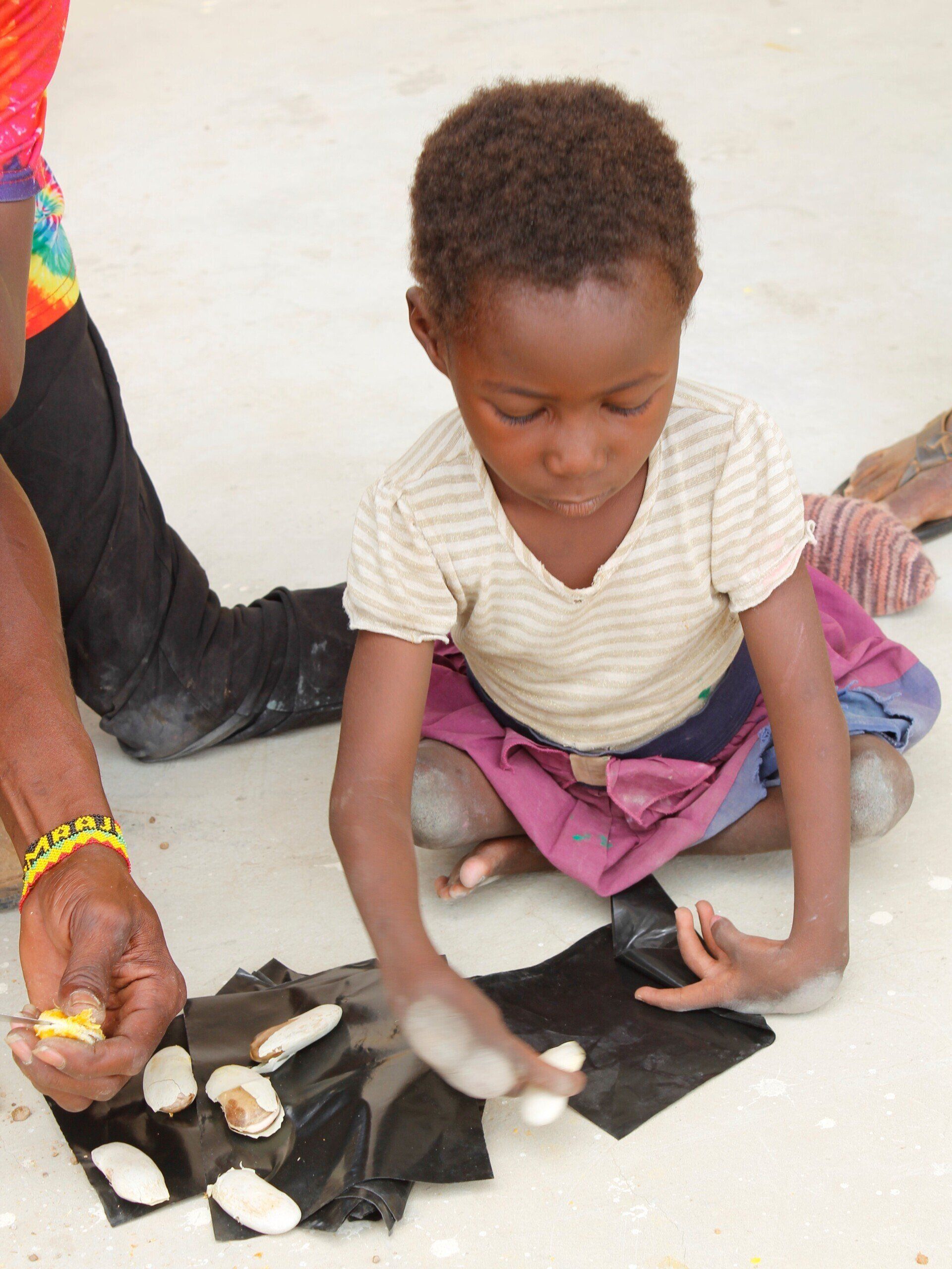 We hebben ze op de veranda schoongemaakt (de volwassenen), maar de kinderen keken zeer geïnteresseerd toe.