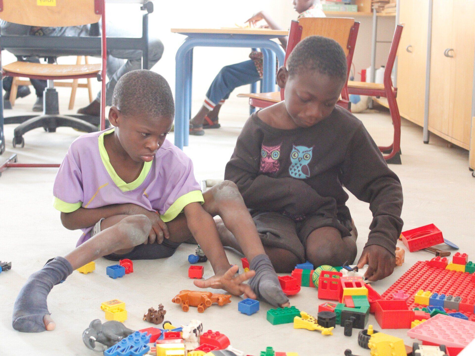 Lekker met de Duplo op de grond, of samen met Mary een dutje doen op de kleedjes!