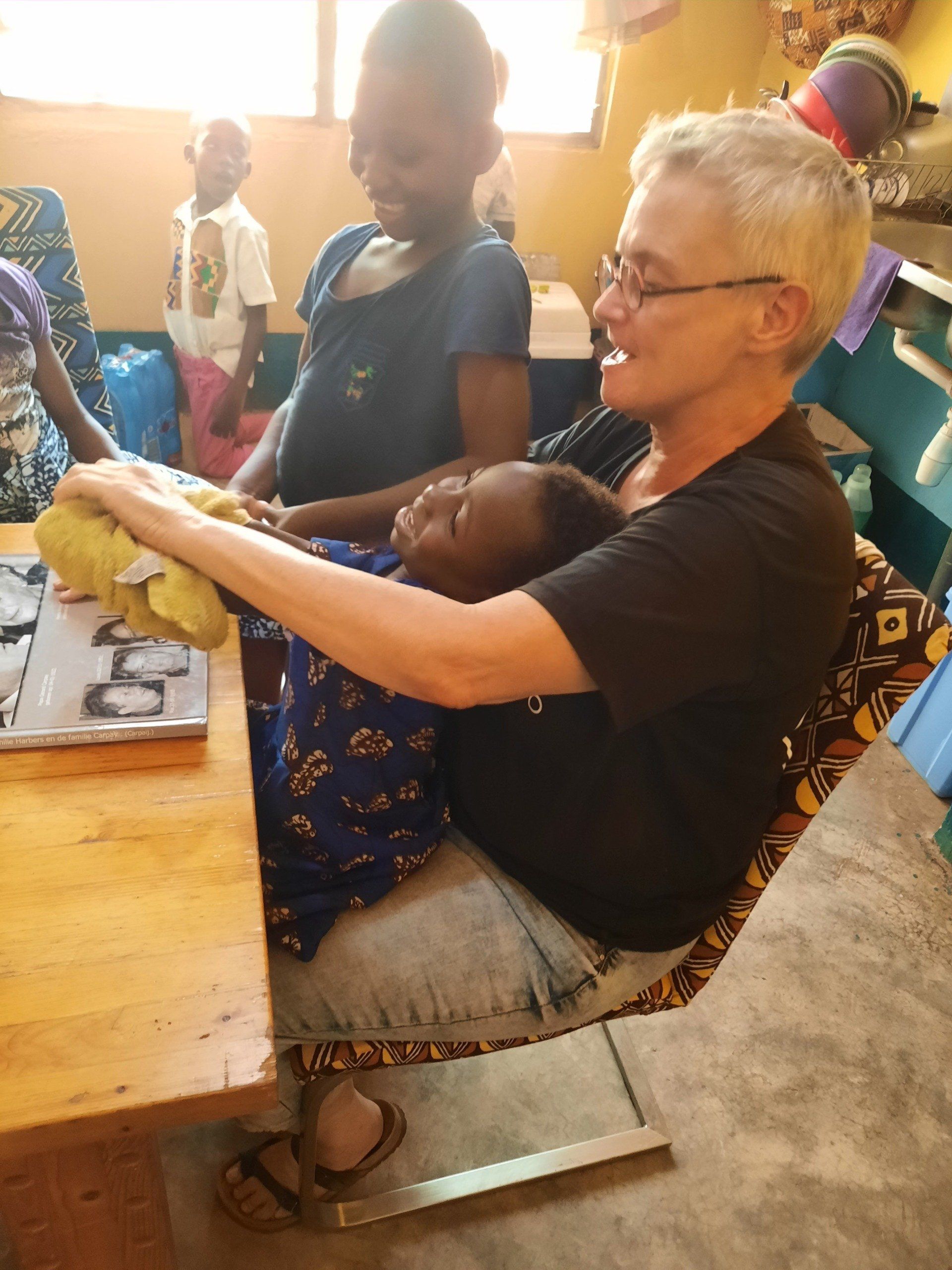 Het was binnen heel erg stil… De kinderen en de staf hebben smakelijk gegeten, behalve Ezekiel, die vond het niet zo lekker. Daarna hebben we in de keuken met de staf het familiefotoboek zitten bekijken. De kinderen keken op een afstandje met ons mee. In het kantoor hebben we later muziek gemaakt op de trekzak. Het was een supergezellige dag!