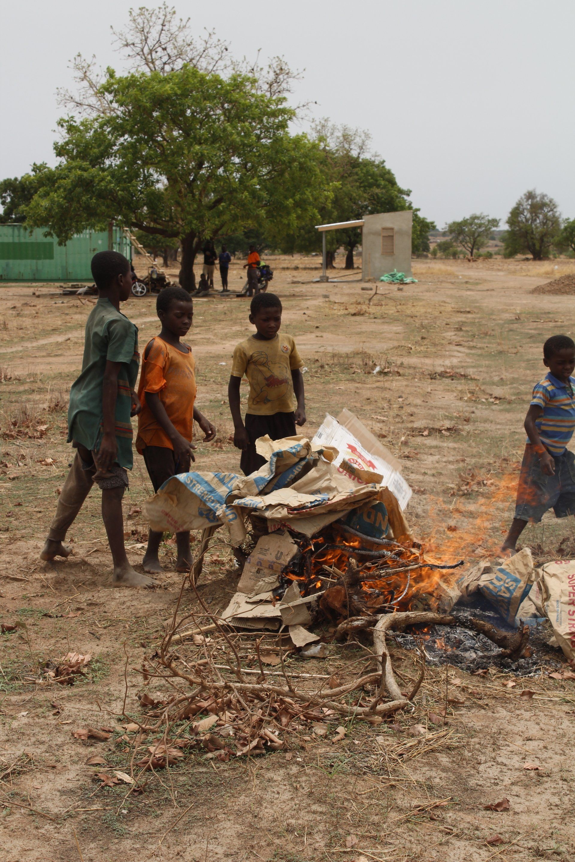 The problem here in Ghana is that everybody just drops all the trash on the floor, even though there's a trash bin 1 meter away. The whole country is therefore full of swirling plastic bags, empty bottles (which are often picked up again to be reused), empty cans and other rubbish. There is now apparently a garbage collection service, but how that works exactly I do not know (yet). It seems to be only for the companies.