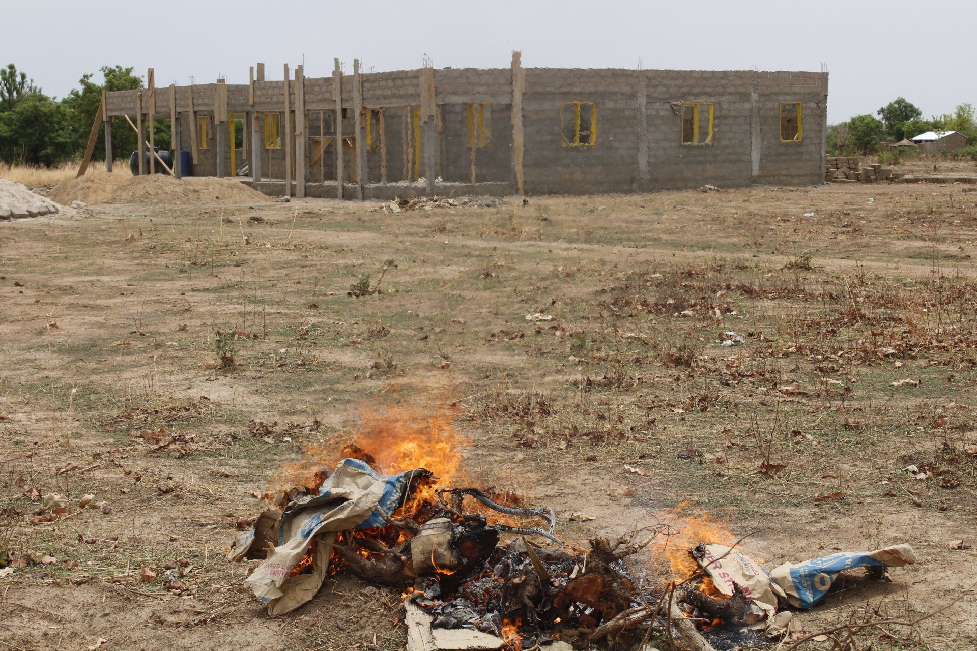 Back to our clean-up campaign. The children of Naasa have participated in it and also a bunch of teenagers. That was nice to see because they didn't really feel like it at all. It wasn't until I arrived with my camera that they became a little more active. The primary school children, on the other hand, were super enthusiastic. They did skip whole parts! But that was because they often don't even recognize plastic as waste! You can imagine! So, I have pointed out some rubbish here and there; the children have collected it in a place away from the building. There fire is started. And if it burns well, they just let it burn: no one pays attention to it anymore!
