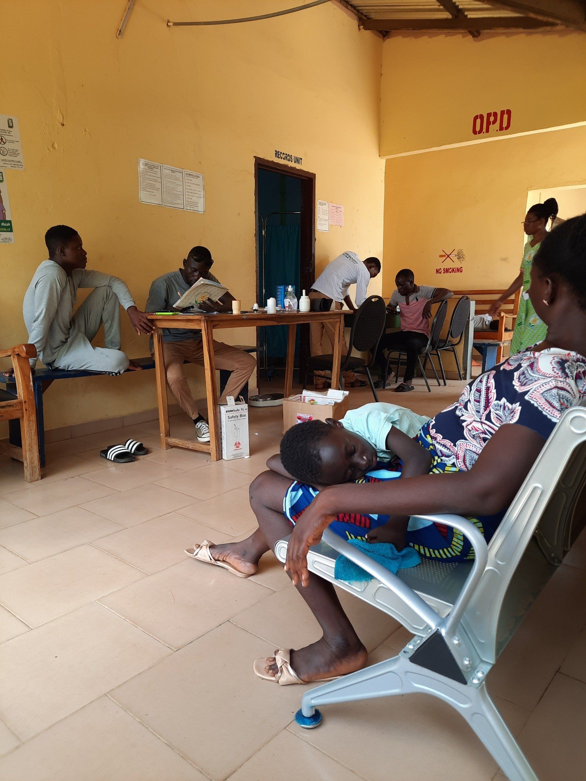 Junior always walks around and usually plays on his own outside. At one point we hear him cry loudly. Mary goes to check what is happening and feels that he feels very warm. We waited for another half hour, but it didn't get any better. So Mary, Junior and I drove together to Siniensi clinic.