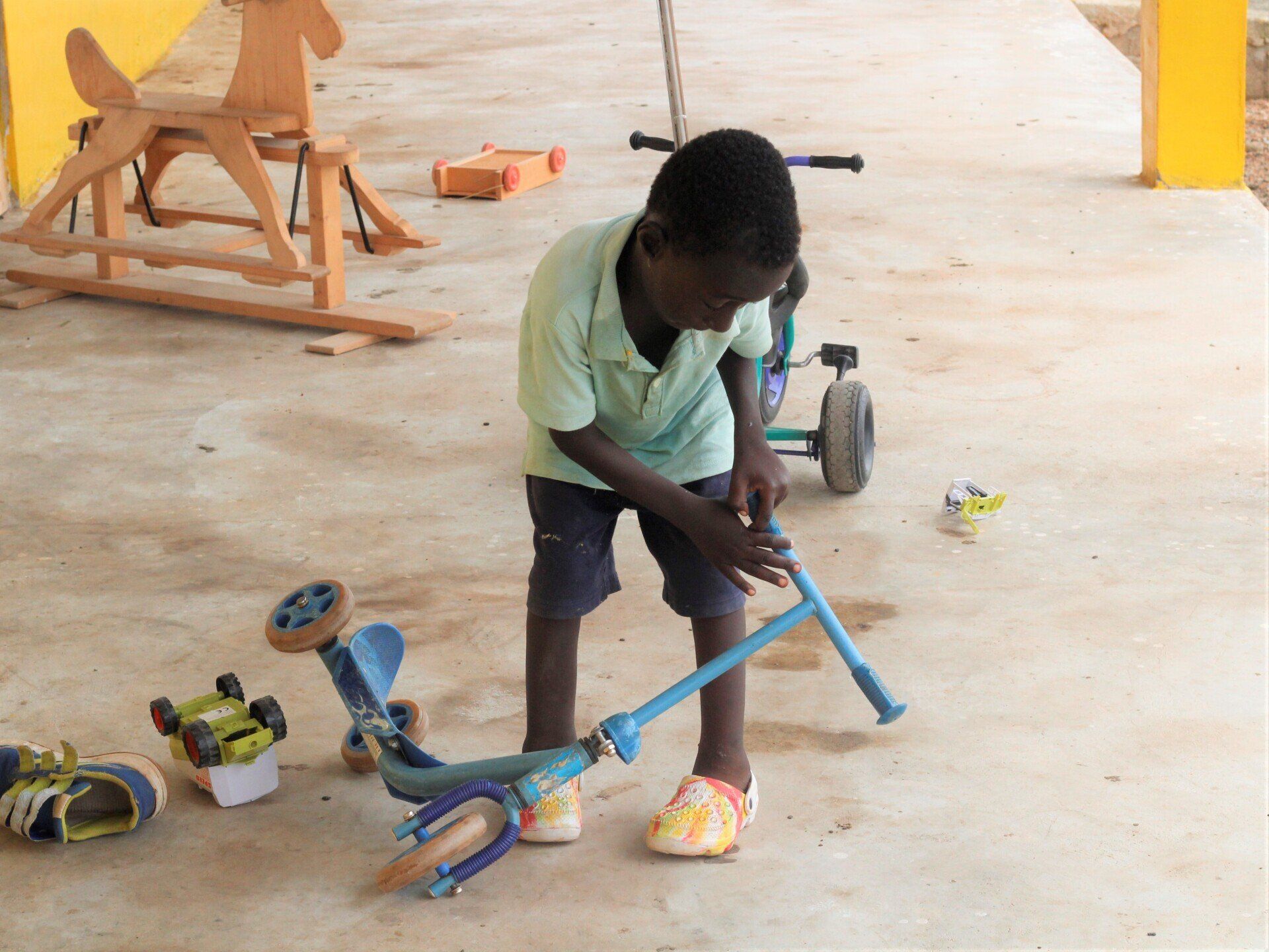 Fortunately, he fell asleep soon after the injections. After the injections we had to wait 2 times for half an hour whether the fever indeed subsided. Fortunately, that was the case and we were able to return to the school. He didn't eat there, but he soon played on the veranda again.