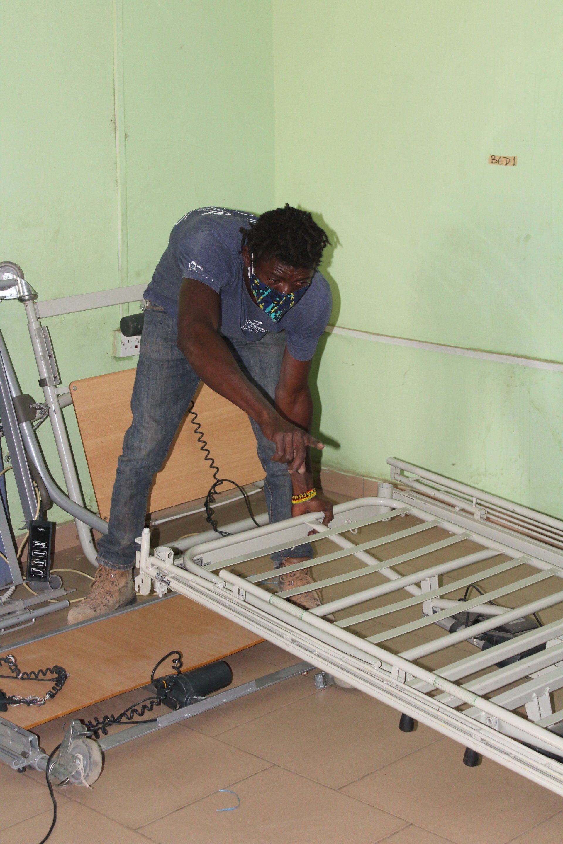 Richard, together with Daniël from the Naasa community, checked and assembled all the beds. The latter turned out to be such a good idea, because from the Presbyterian church (to which the clinic belongs) they did not come with a truck, but with a pick-up. So everything had to be taken apart again and put back together in the clinic. Having a job is not an art: Keeping work!