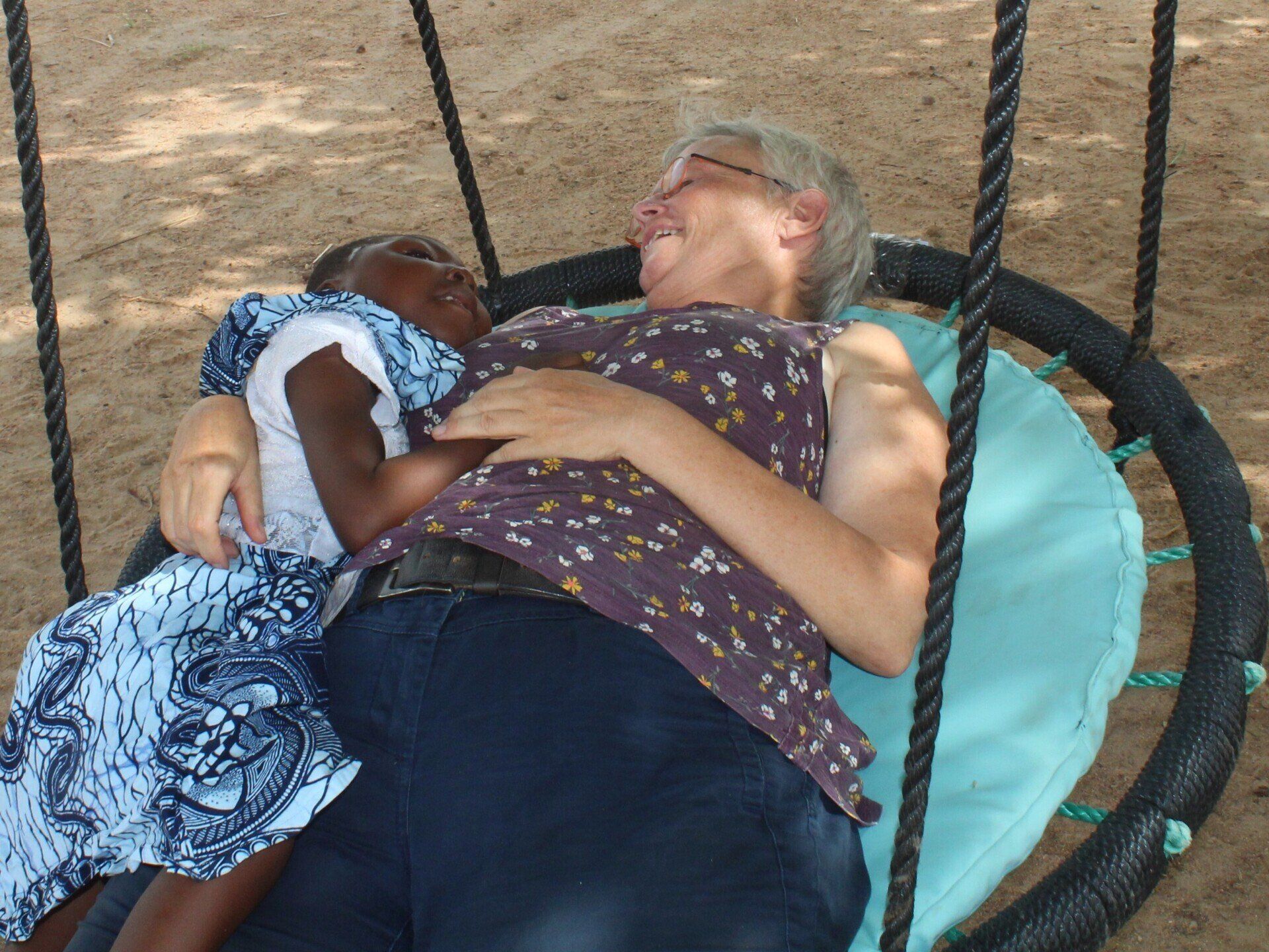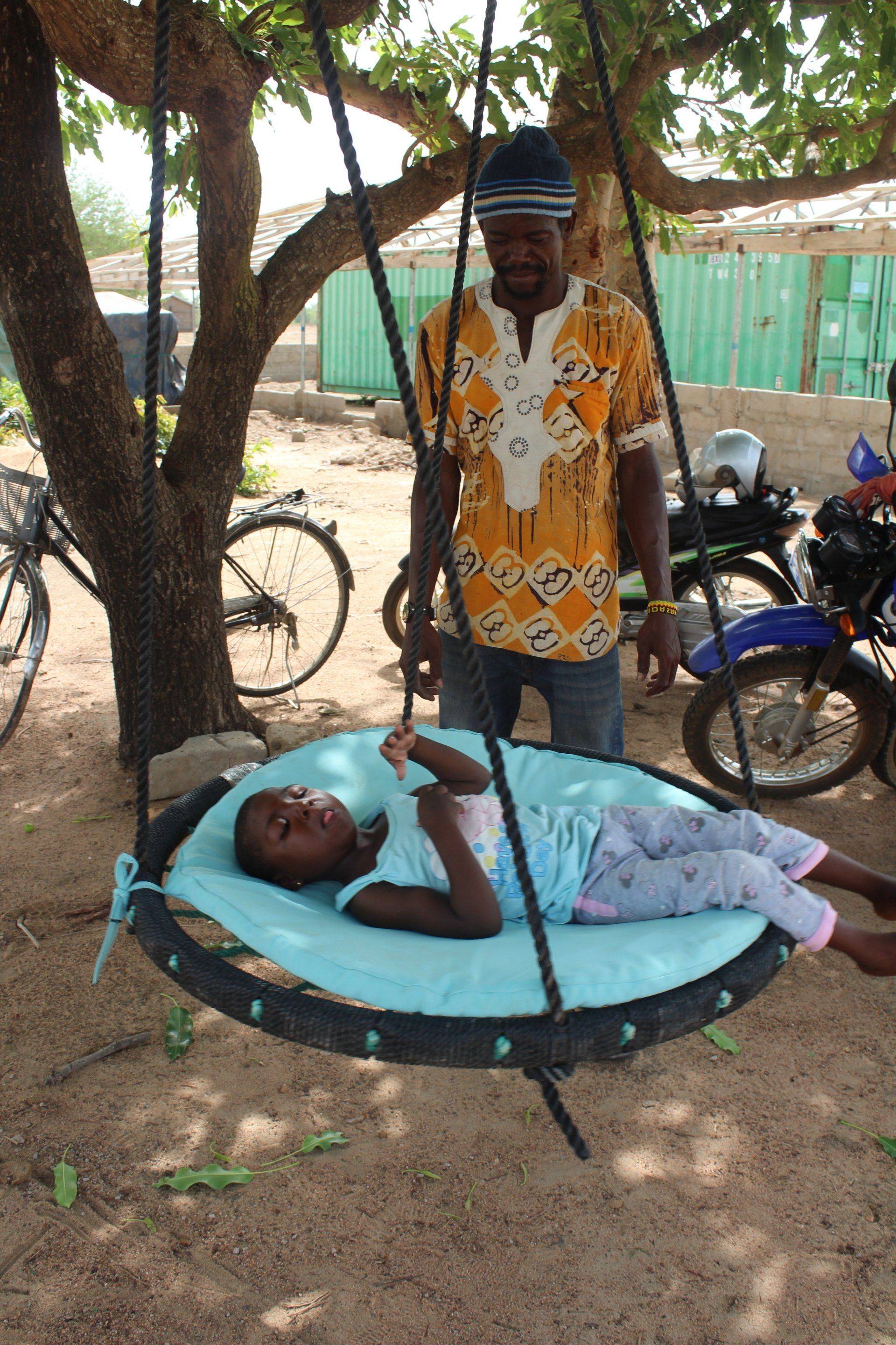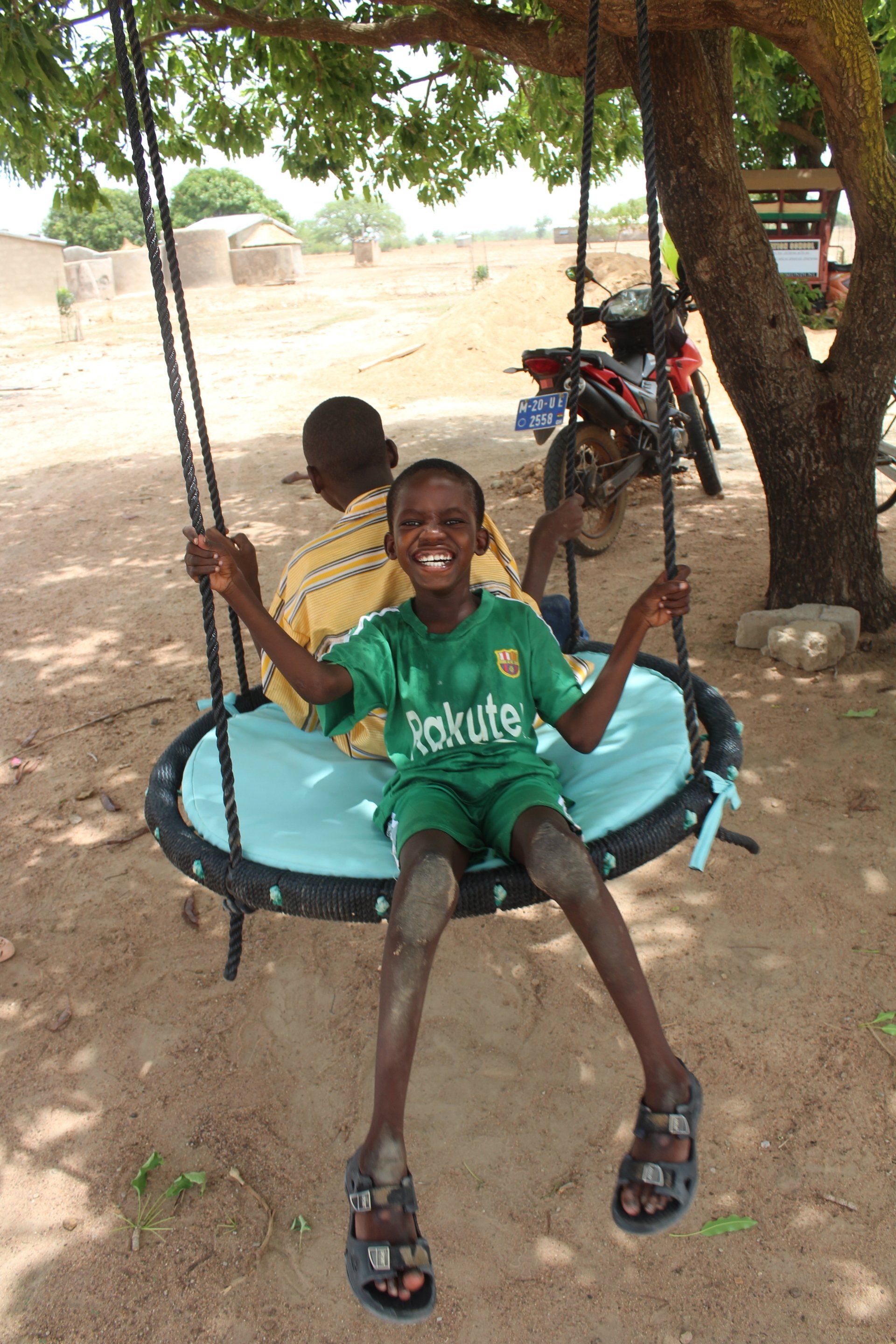 The swing is taken off every day. We still don’t have a fence and the community children are allowed to play on it, but when we are not there, they use the swing too rough. We need to keep an eye on it.