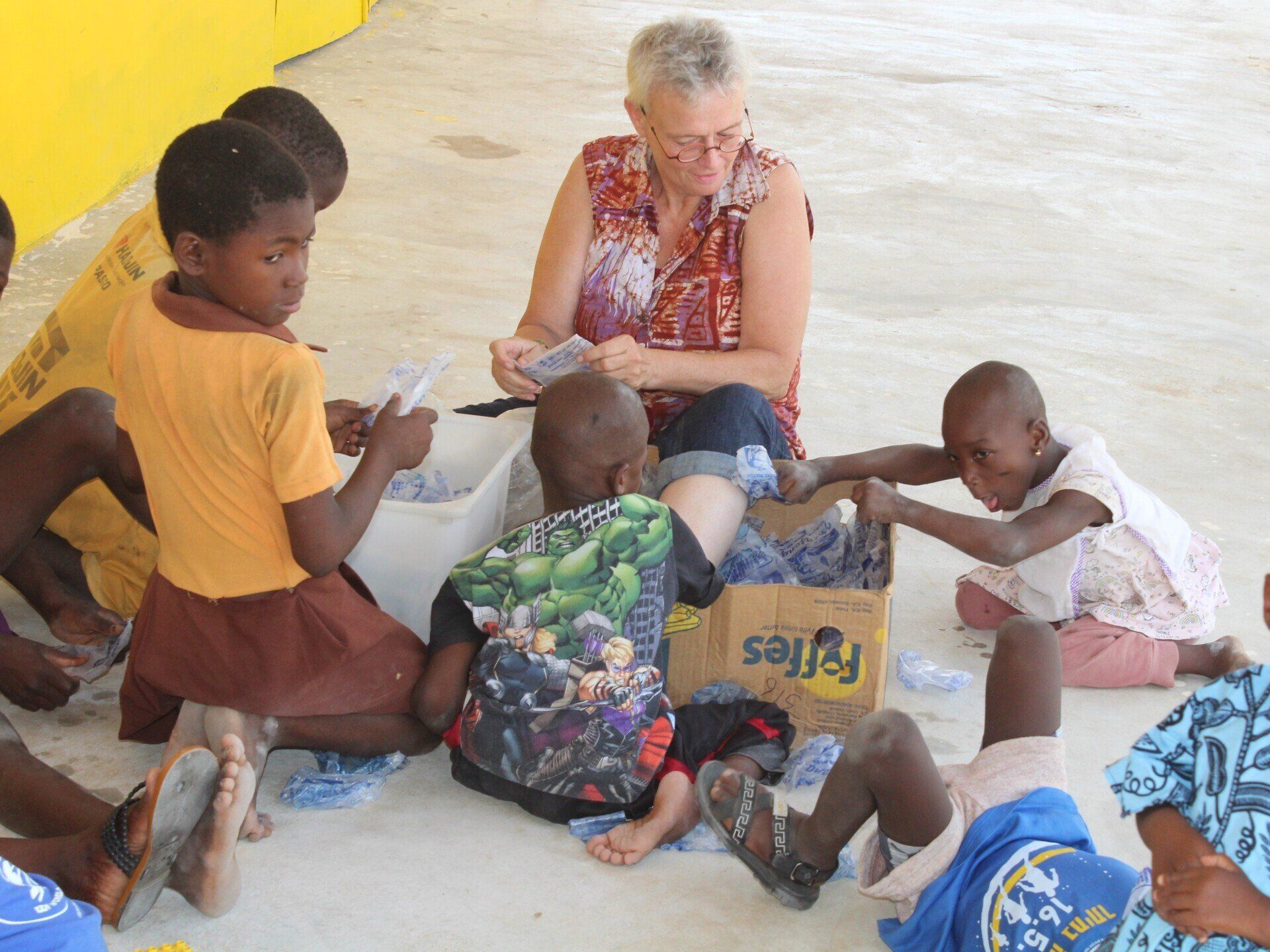 We had received t-shirts from Sophie and Chris, from S.O.S. Ghana. These were handed out this week. That was also a small party. Thank you Sophie and Chris. (Looks a little bit like a school uniform!